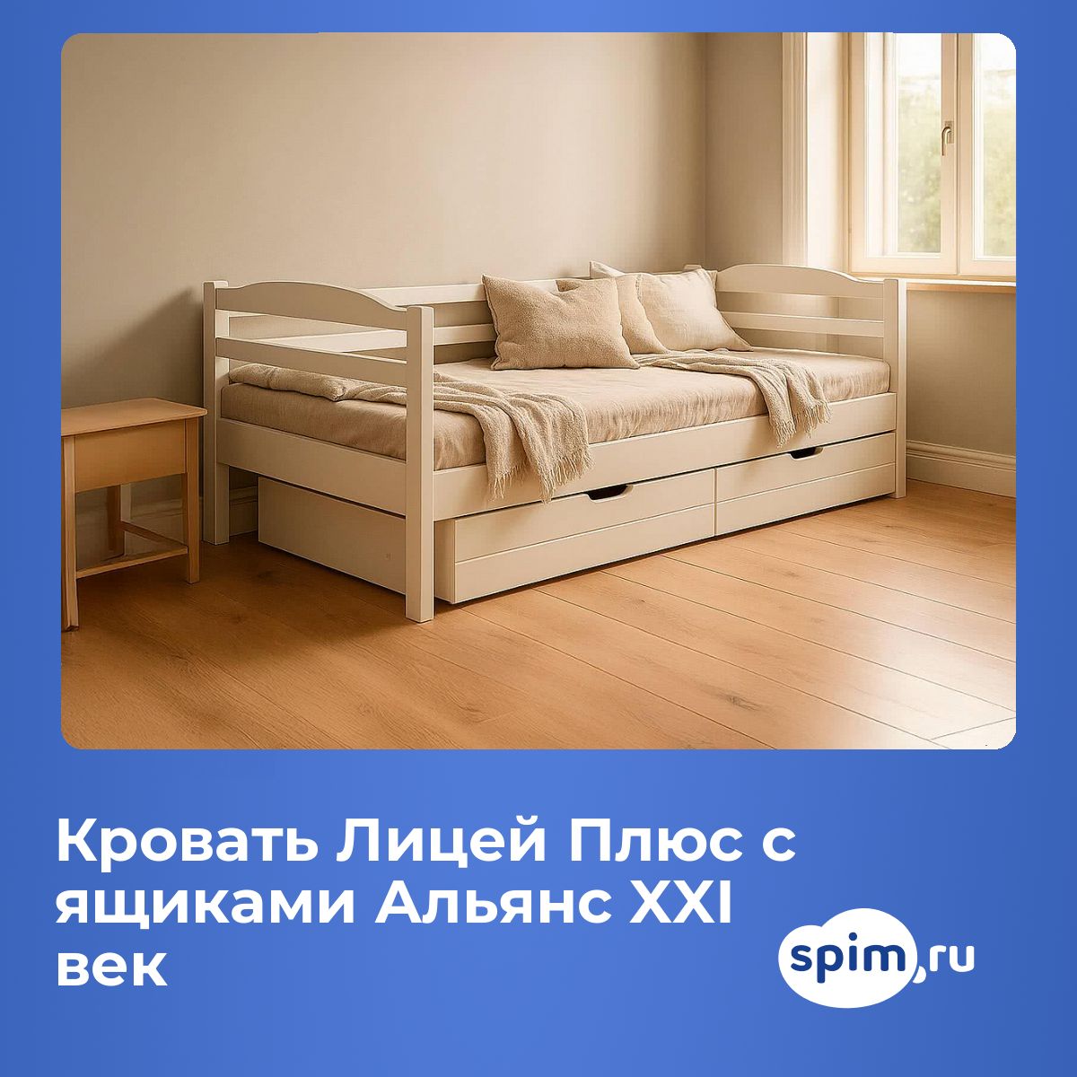 Кровать из массива «Лицей Плюс с ящиками» — надежный и экологичный выбор для спальни.
