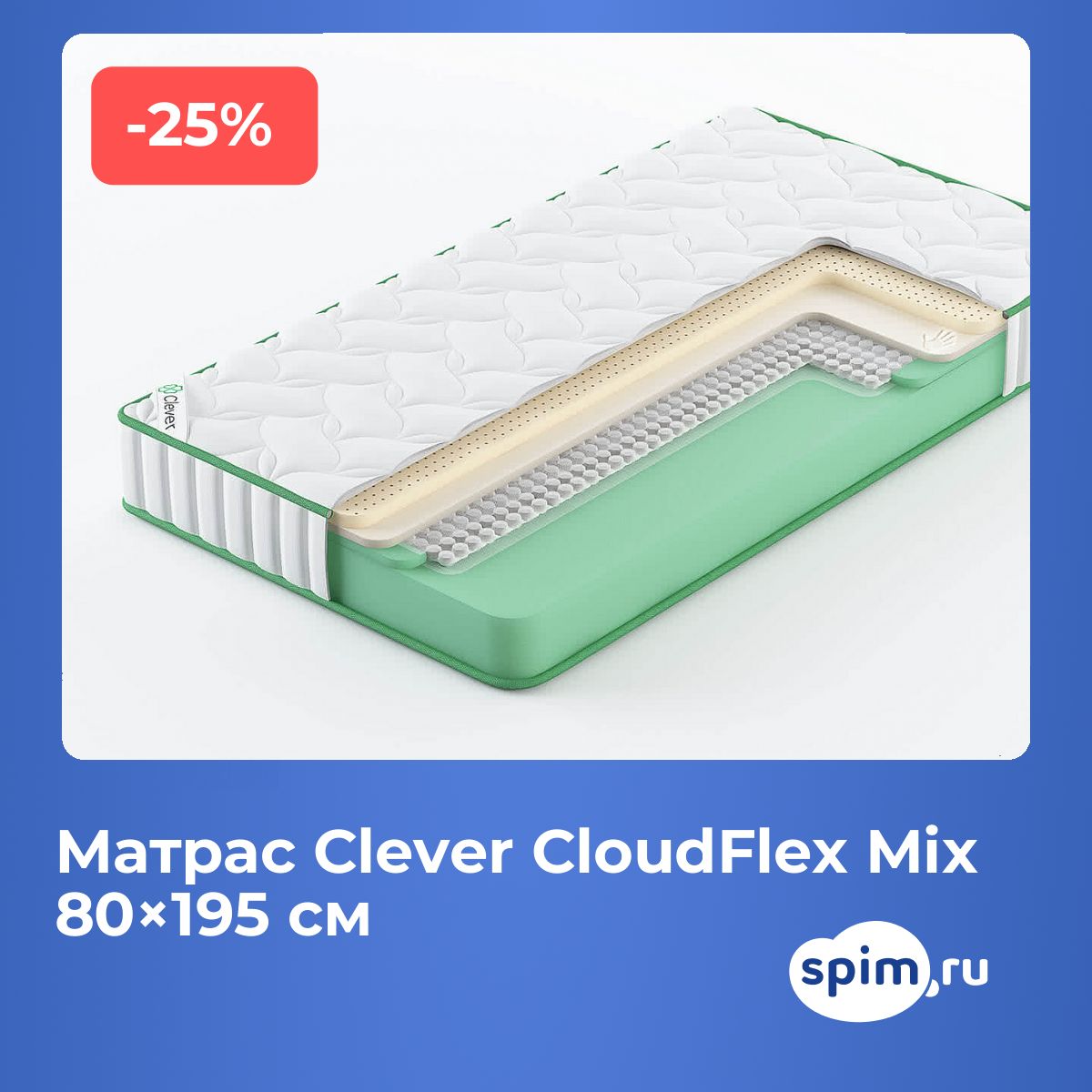 Советы по уходуРекомендуется использовать защитный наматрасник для сохранения чистоты и свежести матраса. Чехол не имеет молнии, поэтому чистка проводится с помощью наматрасника и регулярной смены постельного белья. О производителеБренд Clever появился на российском рынке в 2014 году. Производство расположено в Подмосковье, а в основе коллекции Clever — выверенный баланс цены и качества, современные материалы и продуманная конструкция. Матрасы Clever доставляются по всей России.