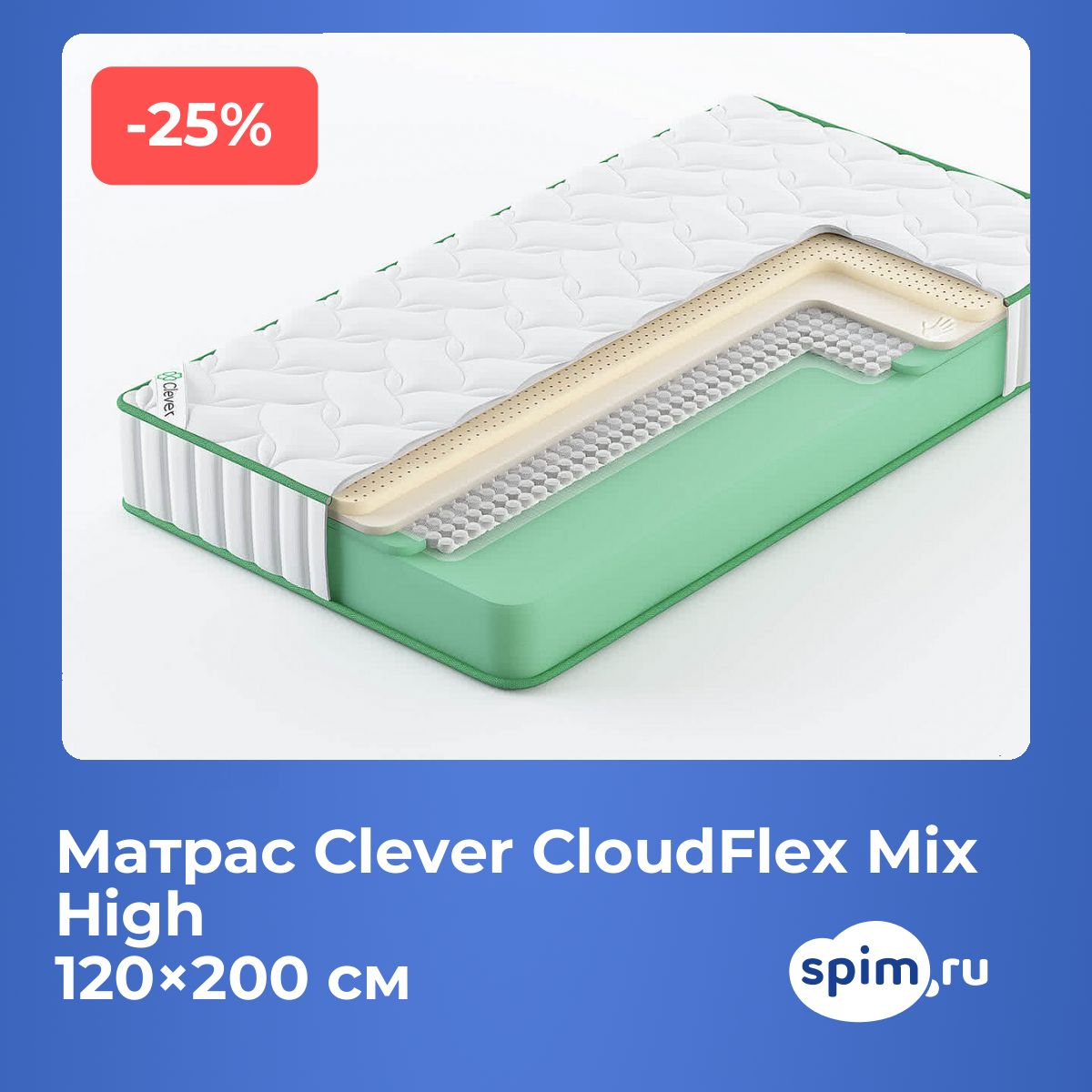 О производителеБренд Clever с 2014 года предлагает матрасы, созданные на основе современных технологий и качественных материалов. Коллекция Cloud — это сочетание инновационных решений, надежности и комфорта для ежедневного использования.