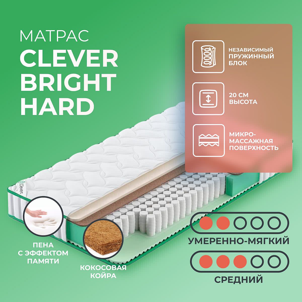 Преимущество матраса Bright Hard — он имеет 2 различные по жесткости стороны: средне-мягкую и средне-жесткую.
