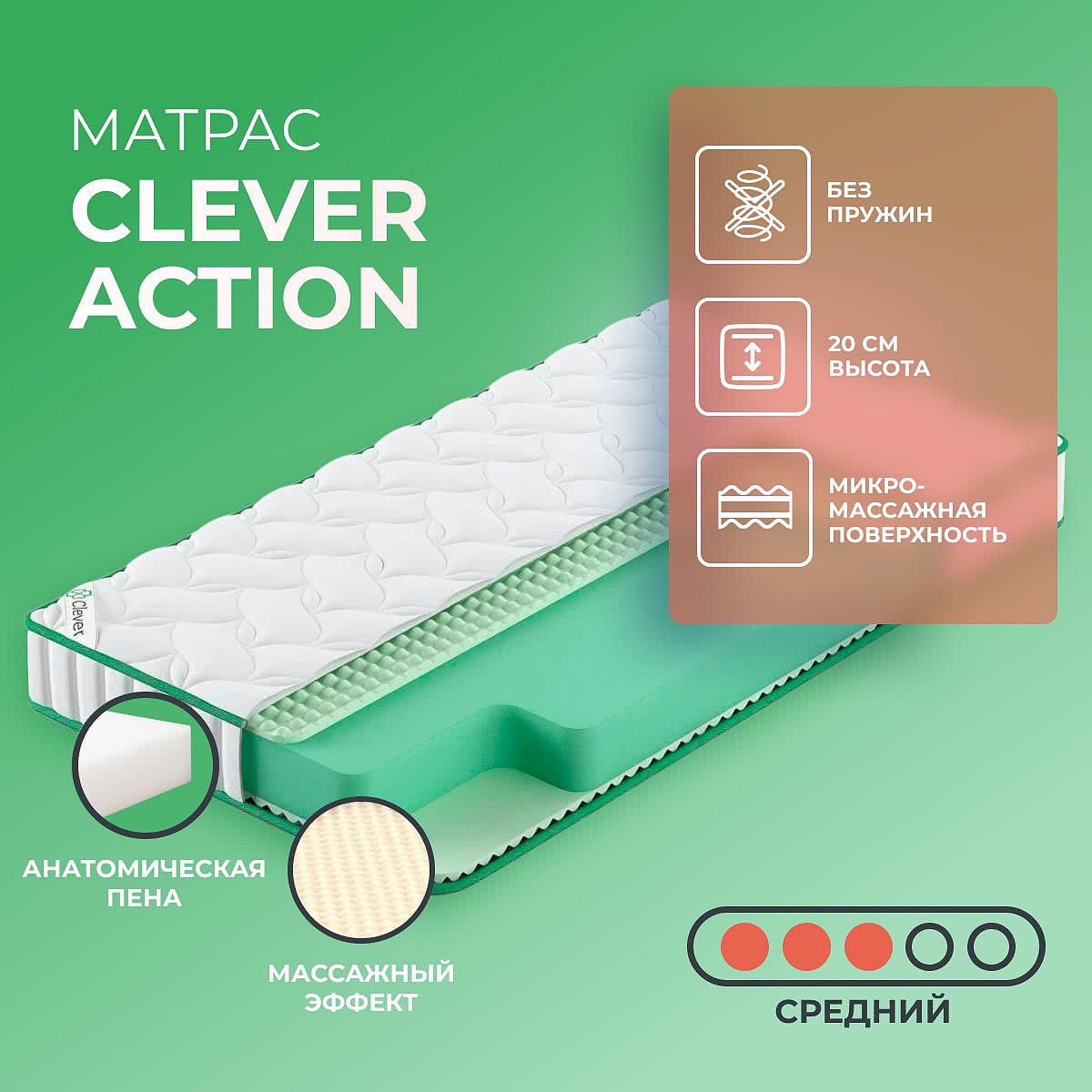 Матрас «Clever Action» — средней жесткости, которая подходит большинству людей среднего телосложения. Это — оптимальный выбор и детям, и взрослым, и пожилым людям.