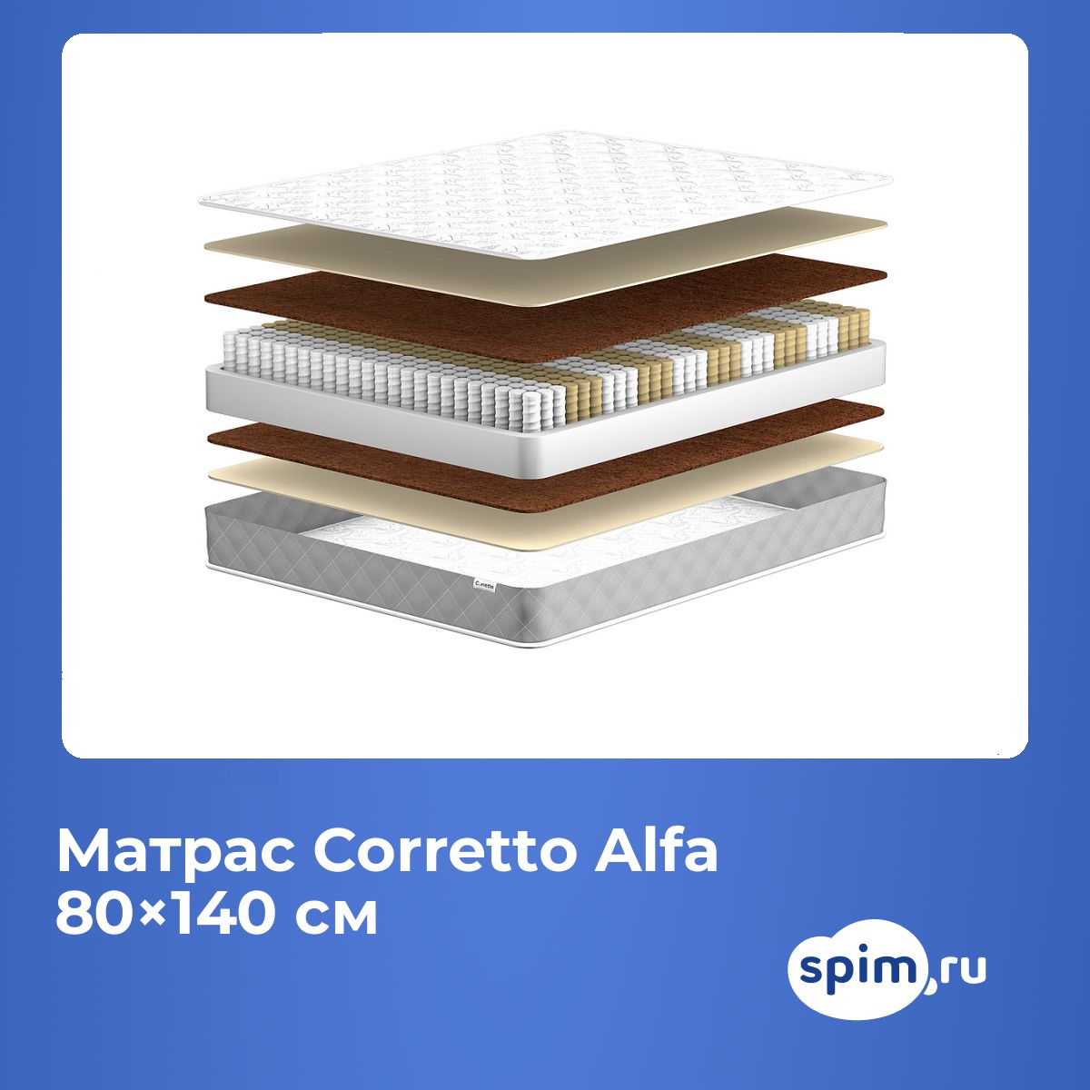 Односпальный матрас Corretto Alfa 80х140 подойдет для кроватей с размерами спального места, обозначенными как 80x140 см, 800х1400 мм, 140х80 см, 1400х800 мм (ширина 80 см, длина 140 см).