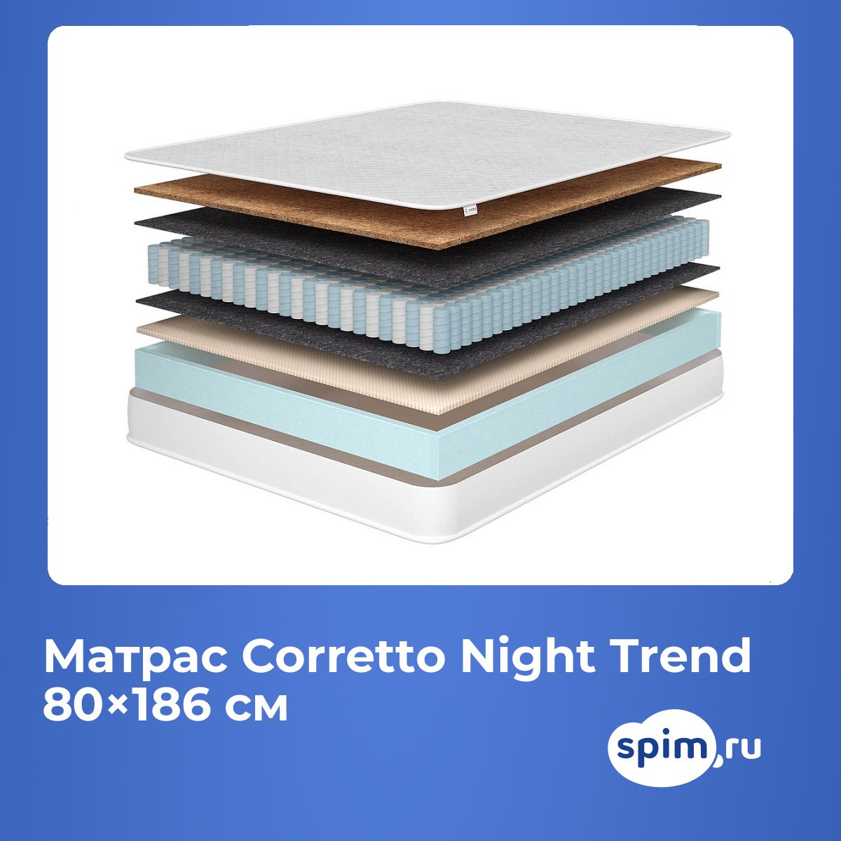 Односпальный матрас Corretto Night Trend 80х186 подойдет для кроватей с размерами спального места, обозначенными как 80x186 см, 800х1860 мм, 186х80 см, 1860х800 мм (ширина 80 см, длина 186 см).