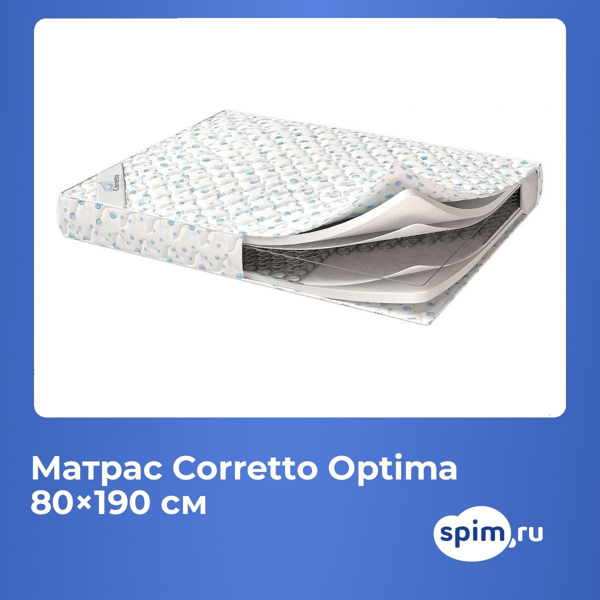 Максимальный рекомендованный вес на спальное место: до 100 кг. Высота, см: 19. По Вашему желанию матрас может быть доставлен в скрученном виде. *Цвет материала может отличаться от представленного на картинке. **Производитель оставляет за собой право изменить цвет ткани чехла. Наполнение моделиПоверхность модели средне-жесткая и выполнена на основе пенополиуретана и спанбонда с обеих сторон. Пенополиуретан прочный и износостойкий. Способен выдерживать большие нагрузки. Кроме того, он хорошо расслабляет и способствует расслаблению всего тела. ППУ имеет поры внутри, через них воздух свободно проходит внутрь изделия. Он гипоаллергенный и нетоксичный. Спанбонд используется как изолирующий материал - он удерживает пружины блока от выпирания.Особенности работы пружинОснова конструкции – пружинный блок зависимого типа Bonnel. Он образован 5-витковыми пружинами, соединенными друг с другом. Пружины выполнены из прочного материала, крепятся к металлическому каркасу и имеют на концах специальные маленькие замочки, которые предотвращают их выкручивание. Такая конструкция характеризуется повышенной прочностью и надежностью, к тому же стоит совсем недорого.Чехол из жаккардаЧехол модели выполнен из жаккарда.Защита матрасаДля защиты поверхности от загрязнений, попадания пыли и влаги на матрас рекомендуем купить защитный наматрасник или водонепроницаемый наматрасник-чехол.Другие моделиПосмотрите также другие пружинные модели: Corretto Optima +, Corretto Optima + (зима-лето).