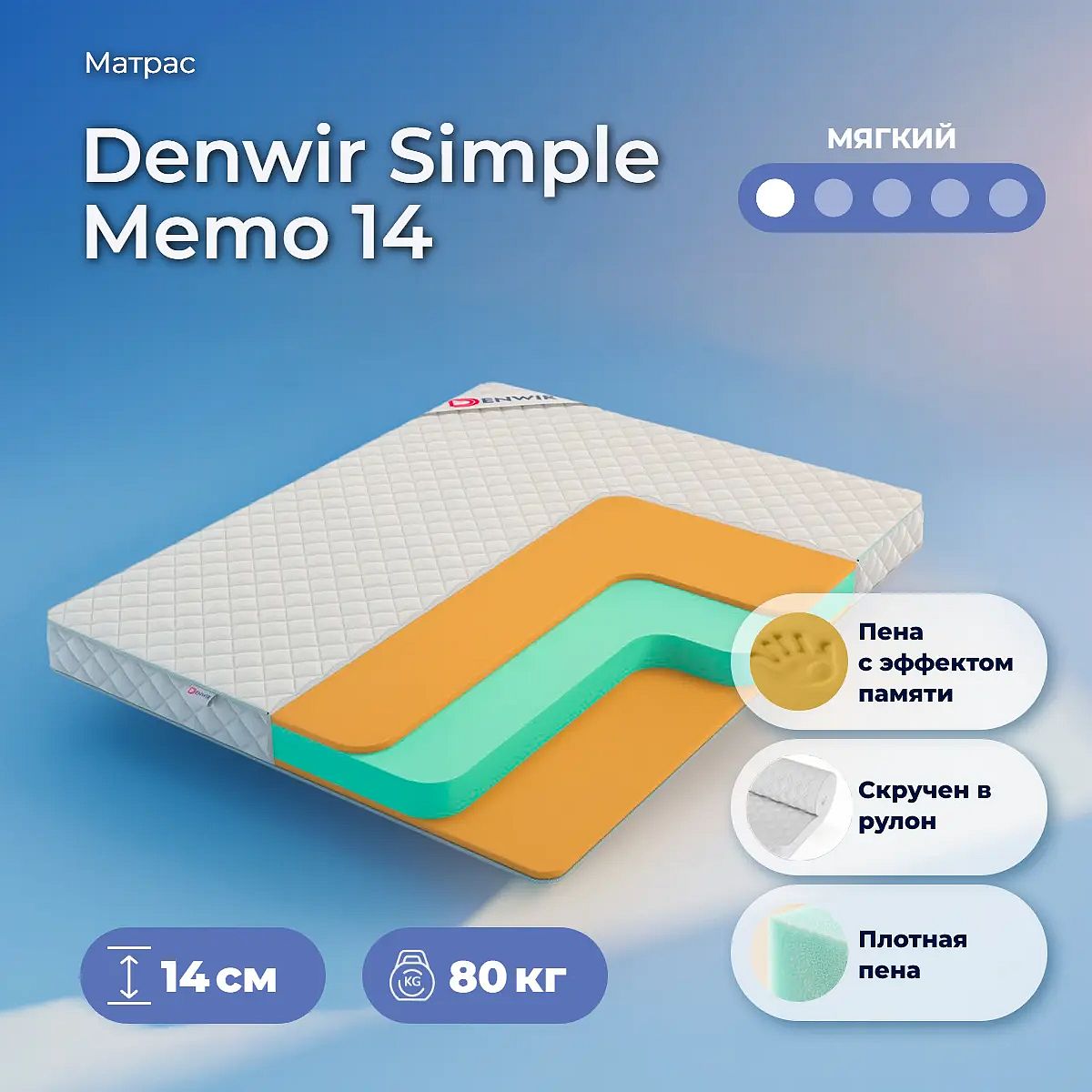 Мягкий матрас «Denwir Simple Memo 14» отлично подойдет человеку с небольшим весом, ценителю комфорта.