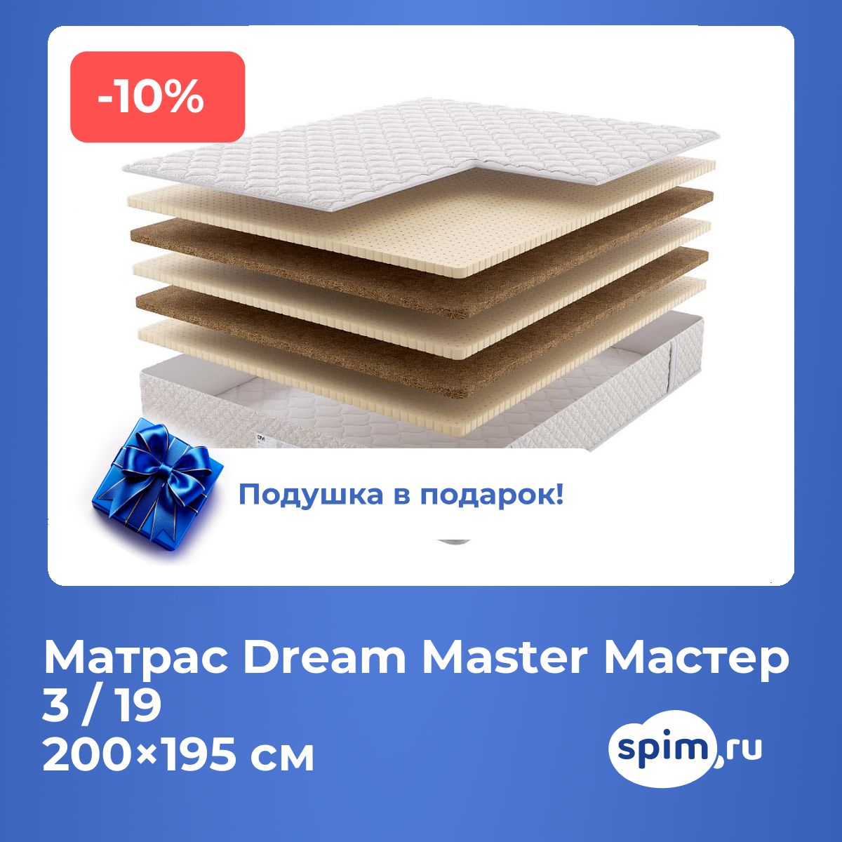 При покупке любого матраса, кроме моделей из серий "Топпер", вы получите в подарок: