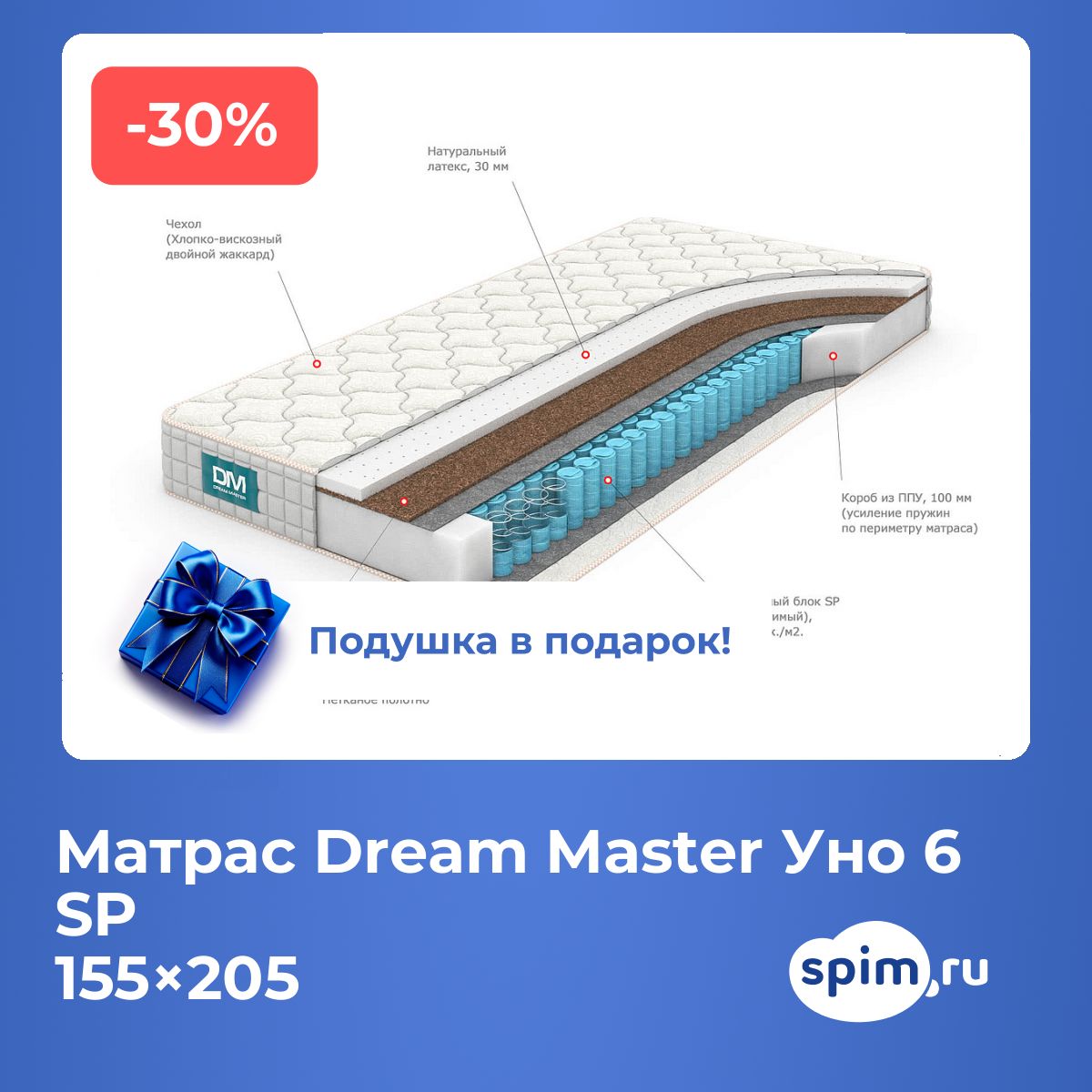 Матраc Dream Master Уно 6 SP 155х205 смАртикул С-97009