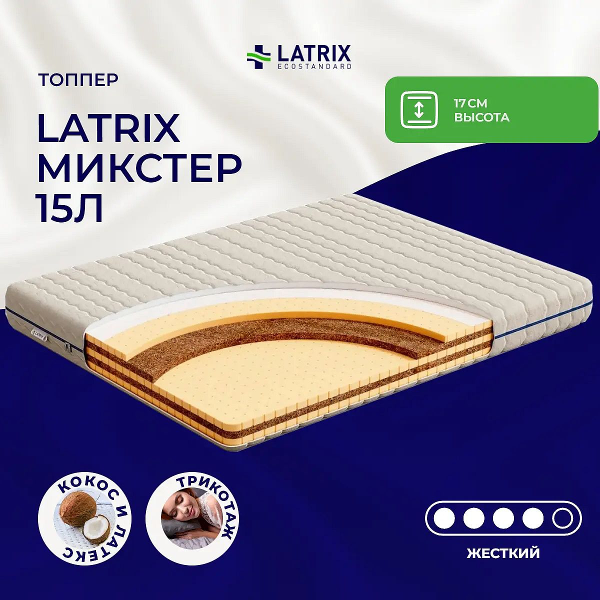 Матрас высокой жесткости «Latrix Микстер 15Л» — оптимальный выбор для уверенной поддержки позвоночника. Именно такие модели обычно рекомендуют подросткам, спортсменам или людям с проблемами позвоночника.