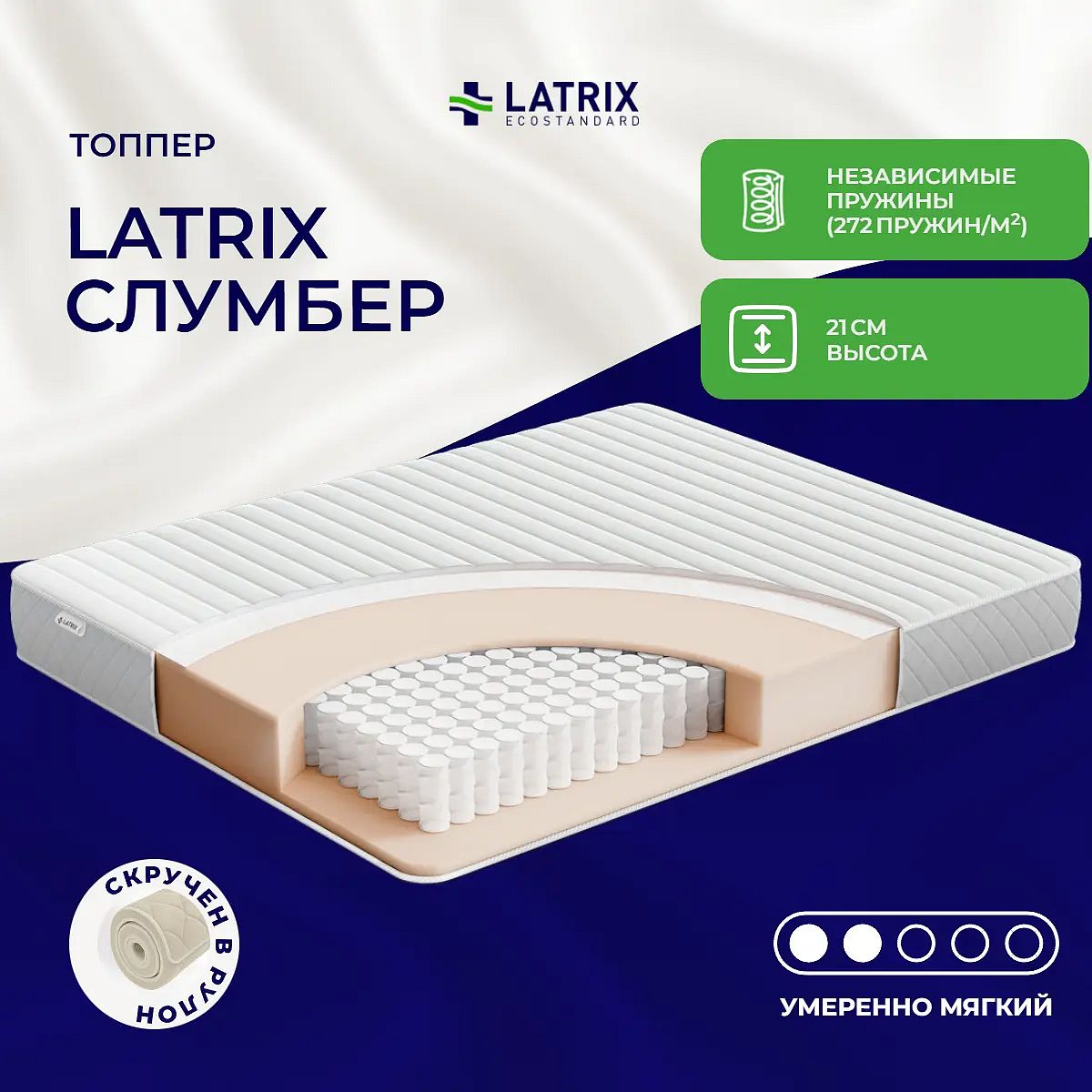 Средне-мягкий матрас «Latrix Слумбер» — для истинного ценителя комфорта. Такой вариант отлично подойдет людям с небольшим весом.