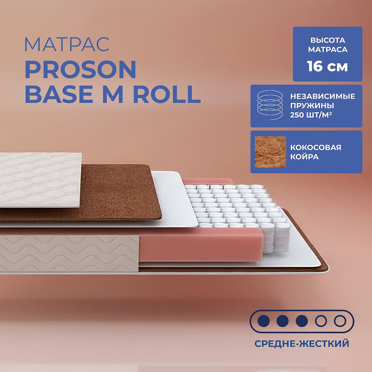 Кокос — натуральный материал, койра отлично дышит, придает матрасу «Base M Roll» жесткость и упругость.