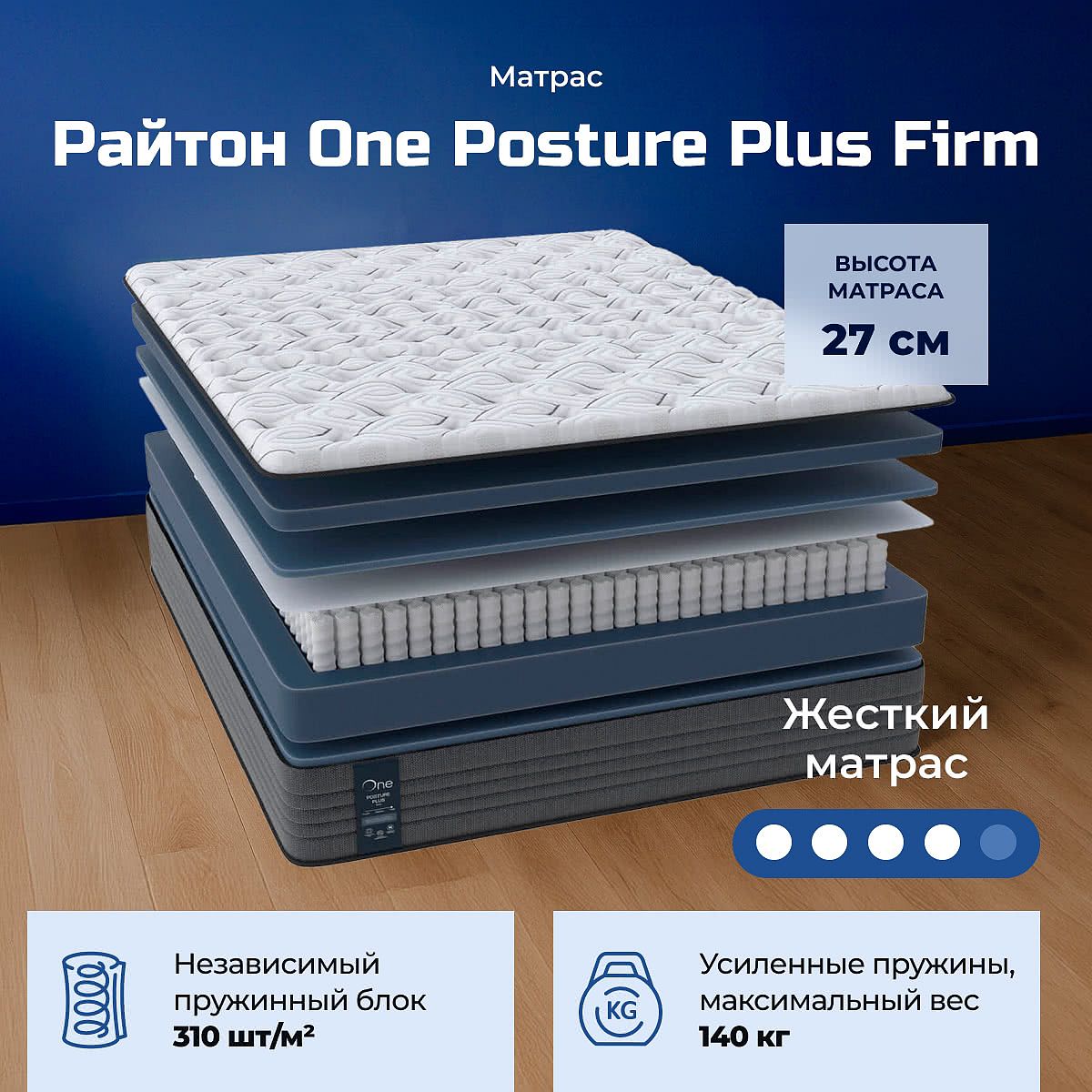 Матрас высокой жесткости «Райтон One Posture Plus Firm» — оптимальный выбор для уверенной поддержки позвоночника. Именно такие модели обычно рекомендуют подросткам, спортсменам или людям с проблемами позвоночника.