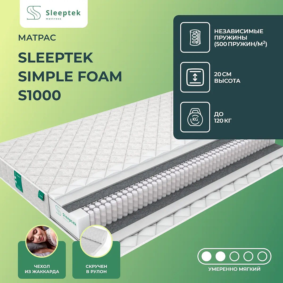 Средне-мягкий матрас «Sleeptek Simple Foam S1000» просто создан для истинного ценителя комфорта. Такая модель отлично подходит людям с небольшим весом.