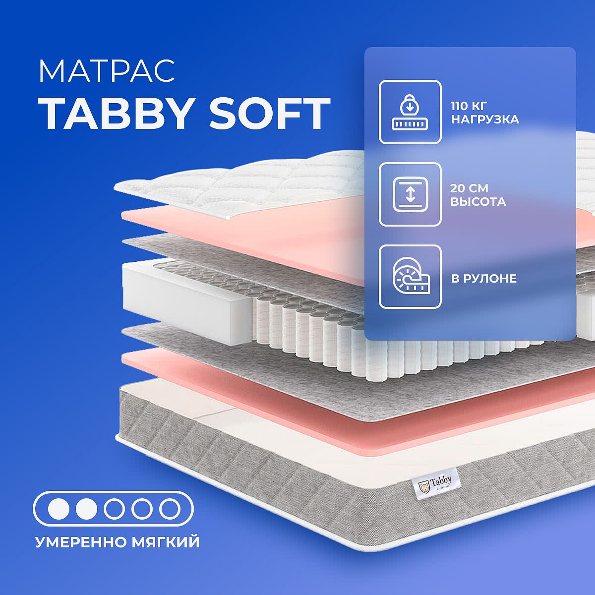 Матрас Tabby Soft имеет среднюю толщину и подходит к большинству типов кроватей.