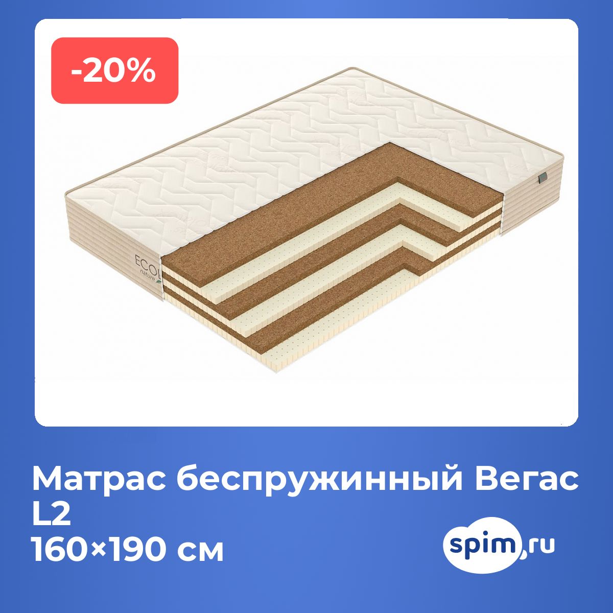Матрас беспружинный Вегас L2 160х190 смАртикул С-20231