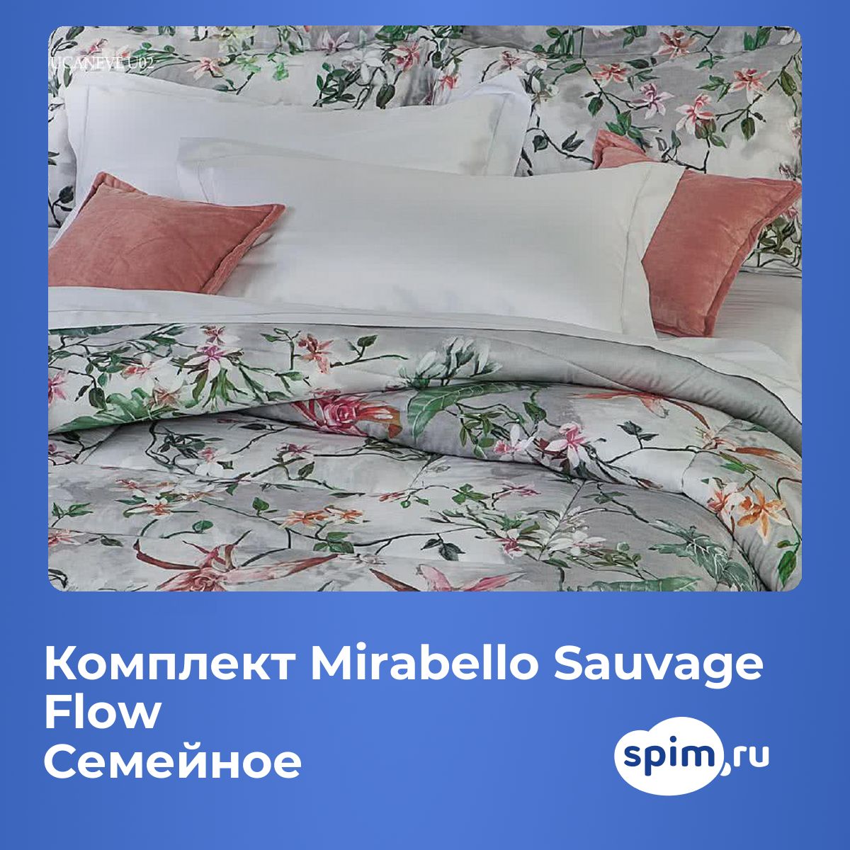 Советы по сочетаниюКомплект с цветочным рисунком гармонично смотрится в светлых и нейтральных интерьерах, легко сочетается с однотонными пледами или декоративными подушками пастельных оттенков. О производителеMirabello — итальянский бренд, известный сочетанием высокого качества материалов и изящного дизайна. Коллекция Sauvage Flow отражает приверженность бренда искусству и комфорту в домашнем текстиле.